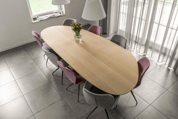 - Voor de met 3-componenten geoliede én 2-componentne gelakte tafelbladen is in het dagelijkse onderhoud afnemen met een droge doek voldoende. Om vlekken/kringen te verwijderen is een vochtige lauwe doek voldoende. Zie de pagina onderhoud voor meer informatie.