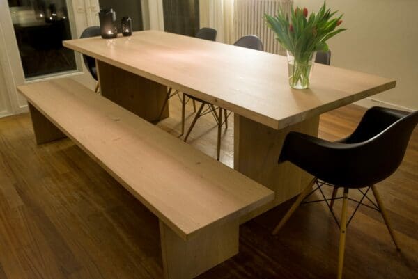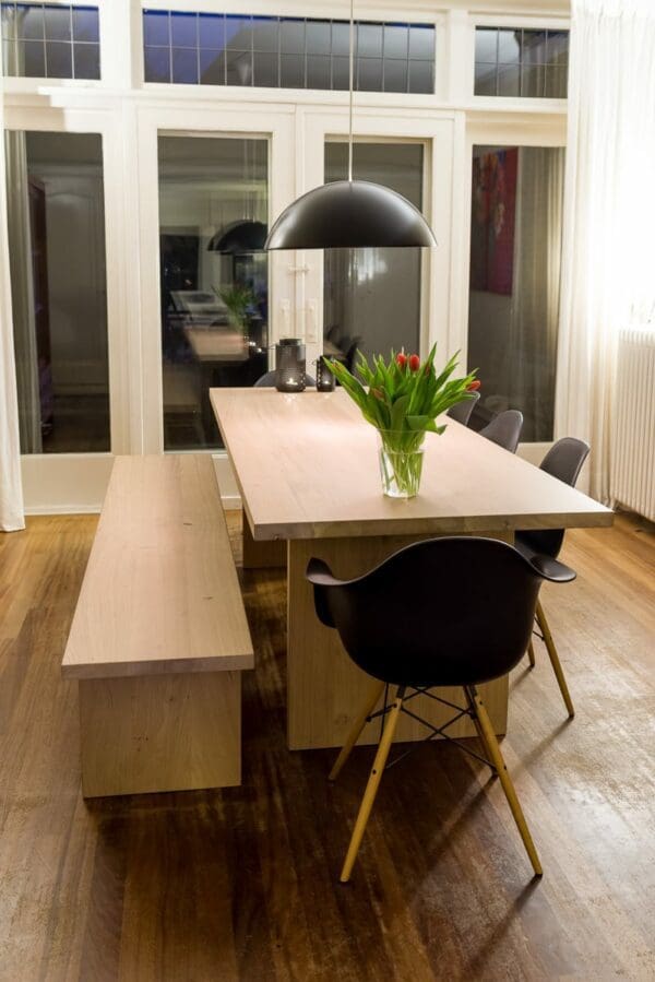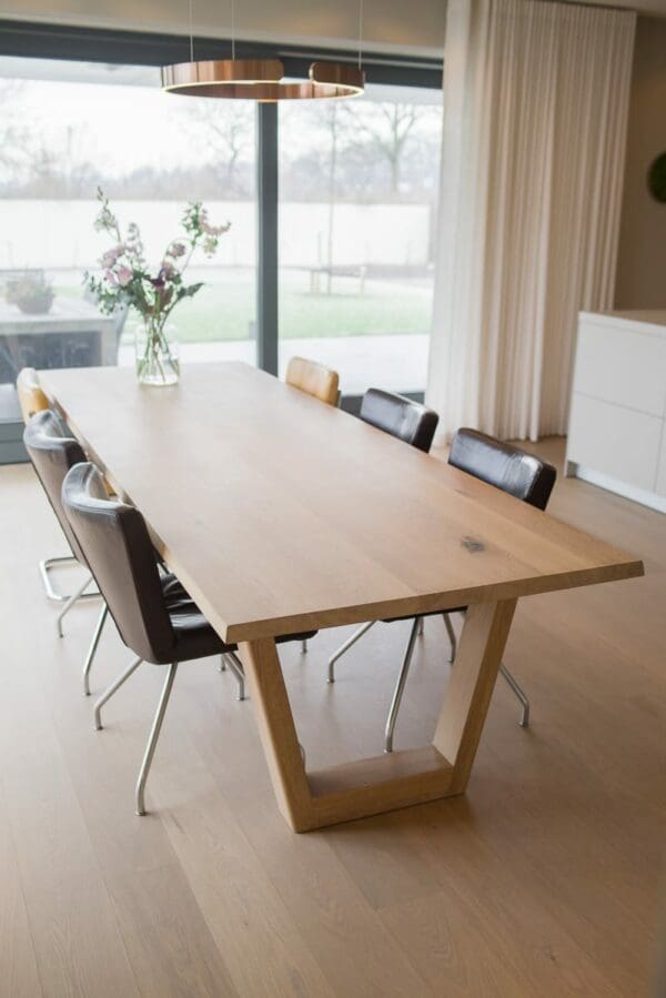 - Voor de met 3-componenten geoliede én gelakte tafelbladen is in het dagelijkse onderhoud afnemen met een droge doek voldoende. Om vlekken/kringen te verwijderen is een vochtige lauwe doek voldoende. Zie de pagina onderhoud voor meer informatie.