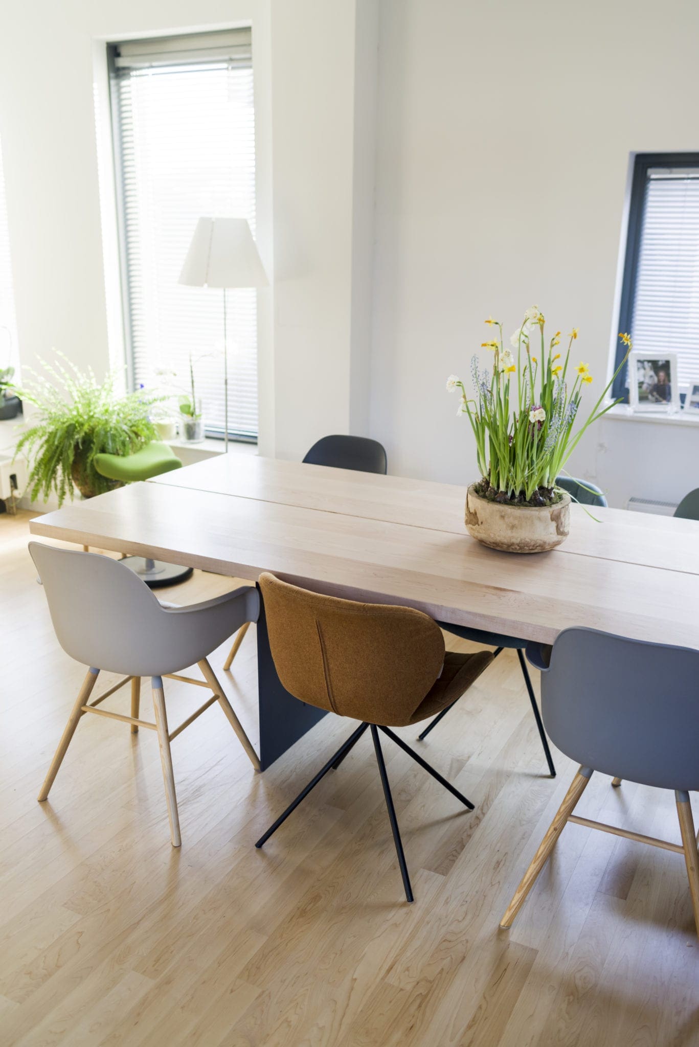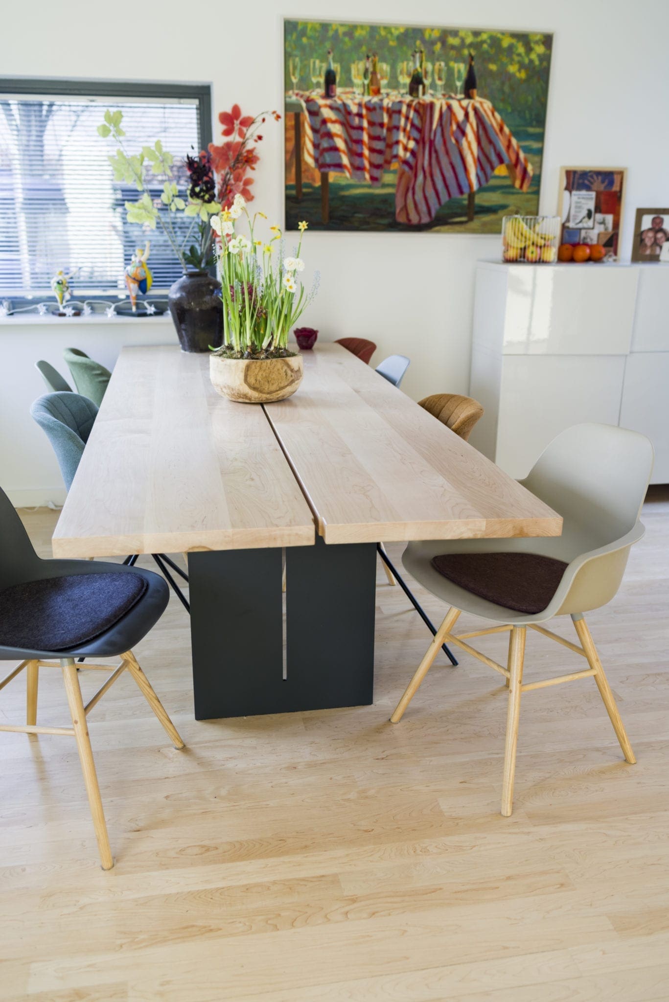 - Voor de met 3-componenten geoliede én gelakte tafelbladen is in het dagelijkse onderhoud afnemen met een droge doek voldoende. Om vlekken/kringen te verwijderen is een vochtige lauwe doek voldoende. Zie de pagina onderhoud voor meer informatie.