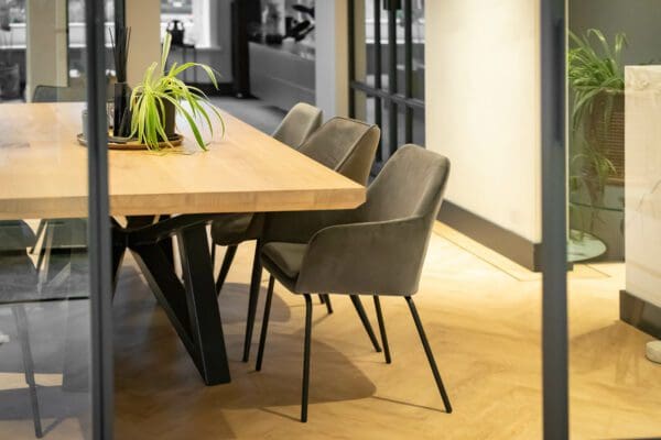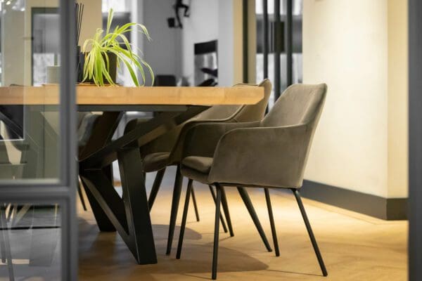 Je hebt waarschijnlijk al een beeld over waar de tafel moet komen te staan. Mocht je daarover twijfelen, laat je dan informeren of adviseren door ons. Onze handige 2D- en 3D-visualisaties vergemakkelijken dit proces, omdat je uitstekend kunt inschatten of de positie, plek en met name de grootte goed is. Wat de positie en ruimte van de tafel betreft is het prettig om ongeveer een meter ruimte te hebben om de tafel heen. Houd hiermee rekening met voldoende doorloopruimte en stoelen die makkelijk en ver genoeg naar achteren geschoven kunnen worden. Twijfel je over de grootte? Dan is een uitschuifbare tafel of het plaatsen van een bankje in plaats van stoelen een optie.