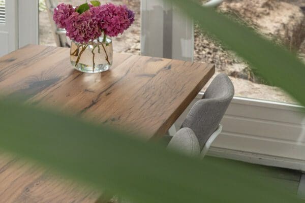 - Voor de met 3-componenten geoliede én gelakte tafelbladen is in het dagelijkse onderhoud afnemen met een droge doek voldoende. Om vlekken/kringen te verwijderen is een vochtige lauwe doek voldoende. Zie de pagina onderhoud voor meer informatie.