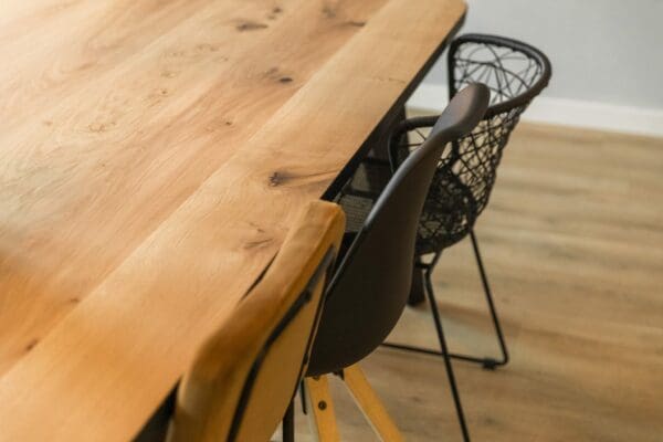 - Voor de met 3-componenten geoliede én gelakte tafelbladen is in het dagelijkse onderhoud afnemen met een droge doek voldoende. Om vlekken/kringen te verwijderen is een vochtige lauwe doek voldoende. Zie de pagina onderhoud voor meer informatie.