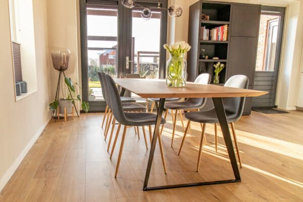 - Onzichtbaar aangebrachte profielen voorkomen kromtrekken en doorhangen. Zorg voor een constant binnenklimaat met een luchtvochtigheid van 40 tot 60 procent.