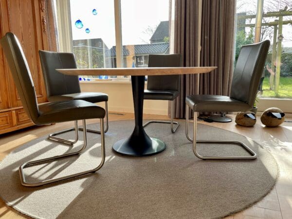 - Geïnspireerd door de natuur: De ronde tafel Tulipano, met zijn enkele poot en ronde blad, straalt de ingetogen elegantie van een tulp uit.