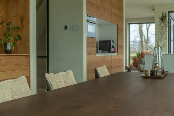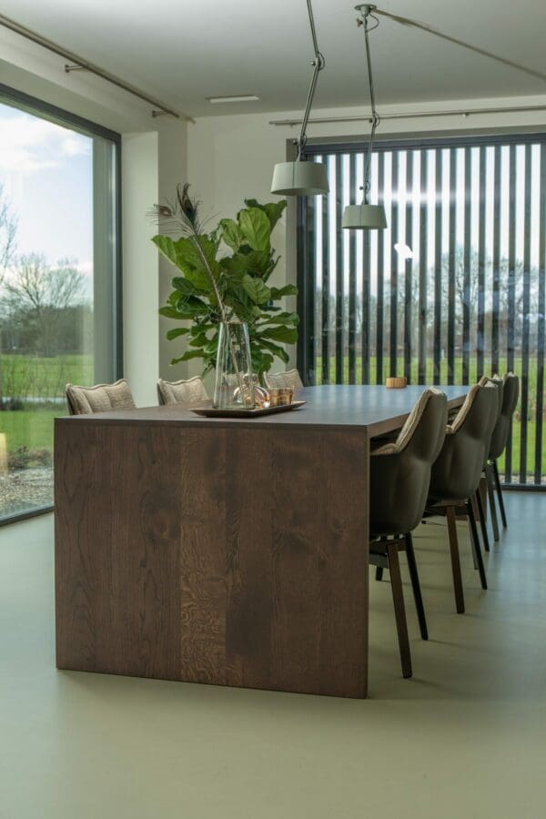 - Voor de met 3-componenten geoliede én gelakte tafelbladen is in het dagelijkse onderhoud afnemen met een droge doek voldoende. Om vlekken/kringen te verwijderen is een vochtige lauwe doek voldoende. Zie de pagina onderhoud voor meer informatie.