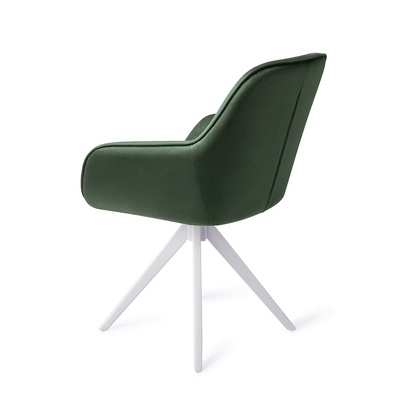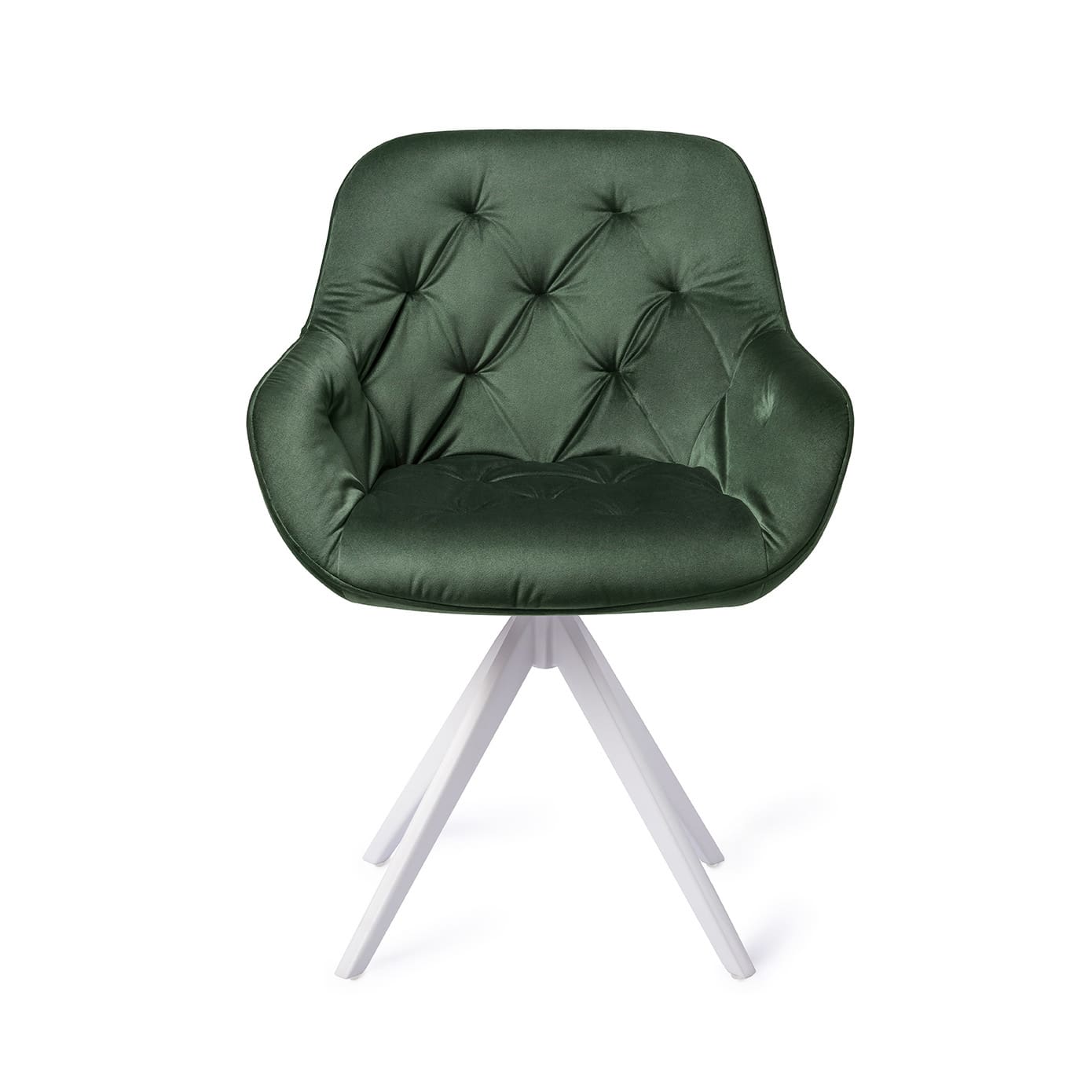 De comfortabele zitting van de Tara stoel is bekleed met een zware velours in twee eigentijdse groentinten, Jungle Zen en Jade. De stoffering in combinatie met de capitonnering in diepgroen ofwel fris groen velours geeft de Tara stoel een charmant en speels uiterlijk.