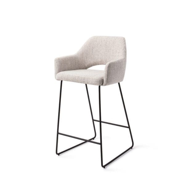 De Yanai barkruk heeft een licht design dankzij de inkeping in de rugleuning. In de bekleding zie je lichte en donkere grijstinten, Very chique.