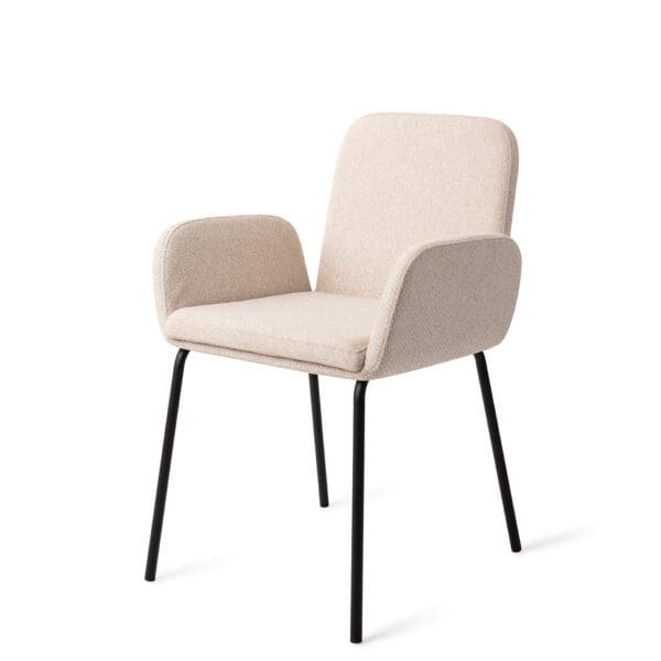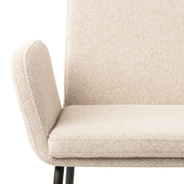 De Tadami eetkamerstoel kenmerkt zich door een opvallend, modern ontwerp. We hebben twee complimenterende stoffen gekozen voor de armleuning en de rest van de zitting, dit geeft een subtiel speels effect.