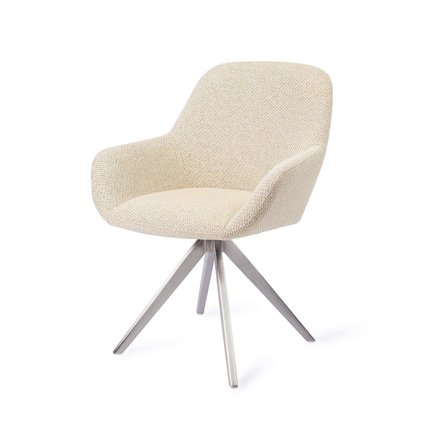 Met de Kushi eetkamerstoel haal je tijdloos design in huis. De kuip heeft licht ronde vormen en heeft een gelijkmatige vulling aan foam die de stoel veel comfort geeft. De armleuning loopt lichtelijk uit en geeft goede steun.