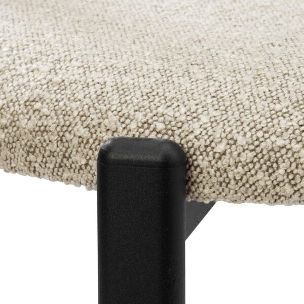 De Obu eetkamerstoel heeft een ogenschijnlijk simpel uiterlijk maar verrast in opvallende details en zitcomfort. Zo is de bekleding een bescheiden boucle in vier net zo bescheiden kleuren die heel goed onderling gemixt kunnen worden.