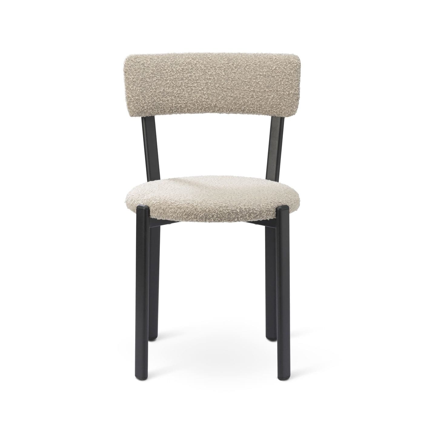 De Obu eetkamerstoel heeft een ogenschijnlijk simpel uiterlijk maar verrast in opvallende details en zitcomfort. Zo is de bekleding een bescheiden boucle in vier net zo bescheiden kleuren die heel goed onderling gemixt kunnen worden.