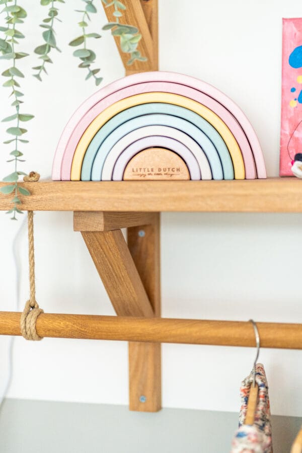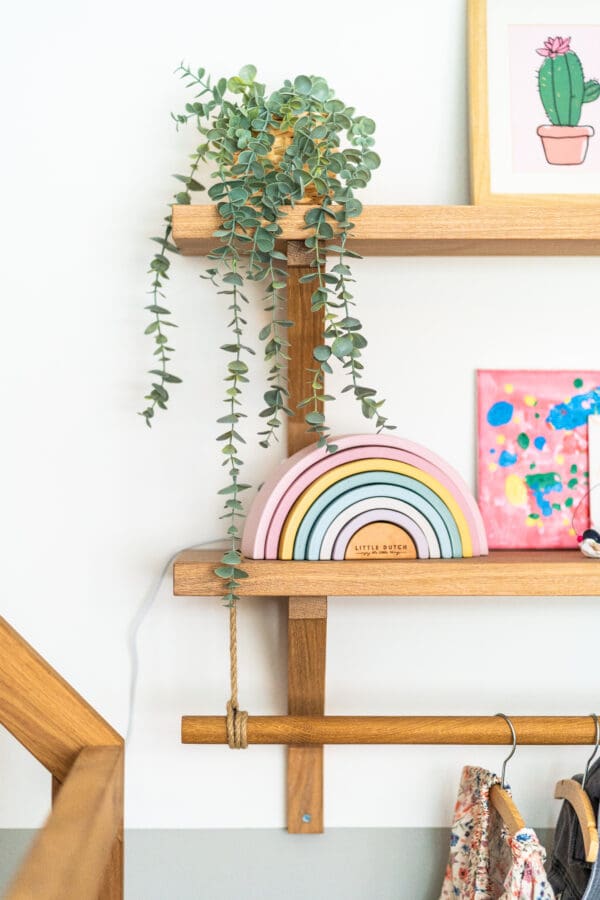 • Dit is een wandplank met massief houten plankdragers. Hierdoor kan de plank zwaar worden belast.