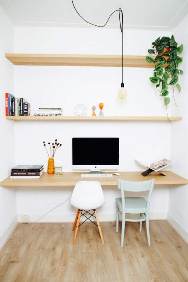 - Dit is een zogeheten ‘zwevende wandplank’. Hierdoor is de ophanging niet zichtbaar, wat een nettere en strakkere look geeft.
