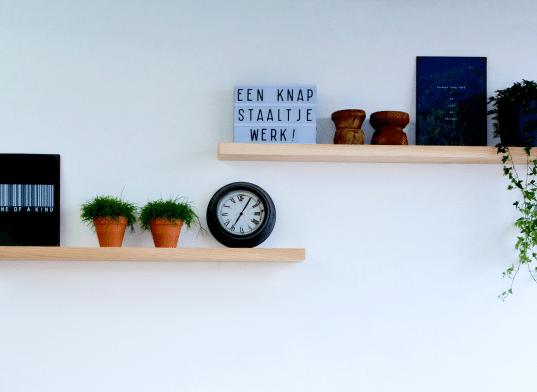 - Dit is een zogeheten ‘zwevende wandplank’. Hierdoor is de ophanging niet zichtbaar, wat een nettere en strakkere look geeft.